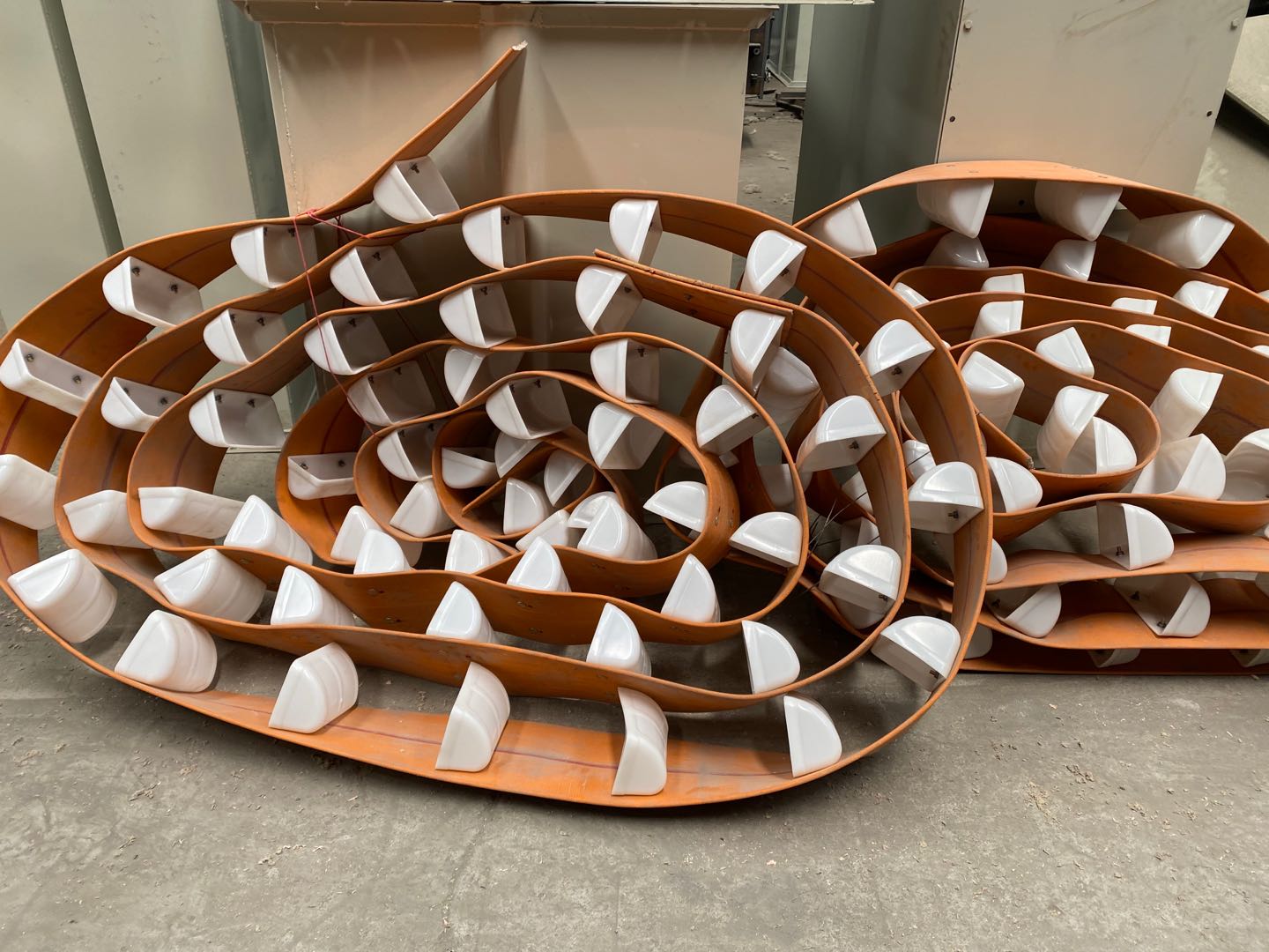 2、機(jī)殼安裝好后,安裝鏈條及料斗。料斗連接用的U型螺絲,既是鏈條接頭,又是料斗的固定件。U型螺絲的螺母 要扭緊并防松。